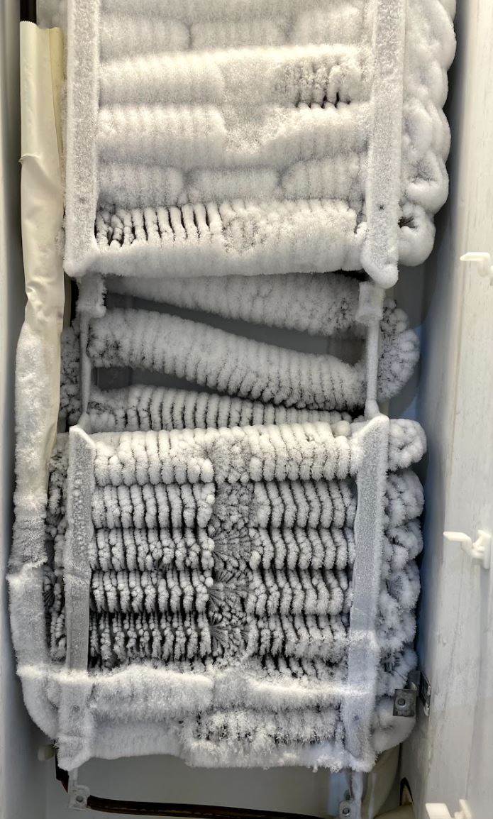 Over a period of time, refrigerator coils frost up catching the humidity from the food and from room air when the door is opened. The refrigerator system defrosts the ice on the coils by turning on a heater. If the heater doesn't turn on or there is a problem with controls or thermostat, unremoved frost (or ice) covers the cooling coils and reduces the refrigerator or freezer and eventually the refrigerator or freezer fails to cool the stored food or other stuff. It is a easy fix if the heater is found defective.