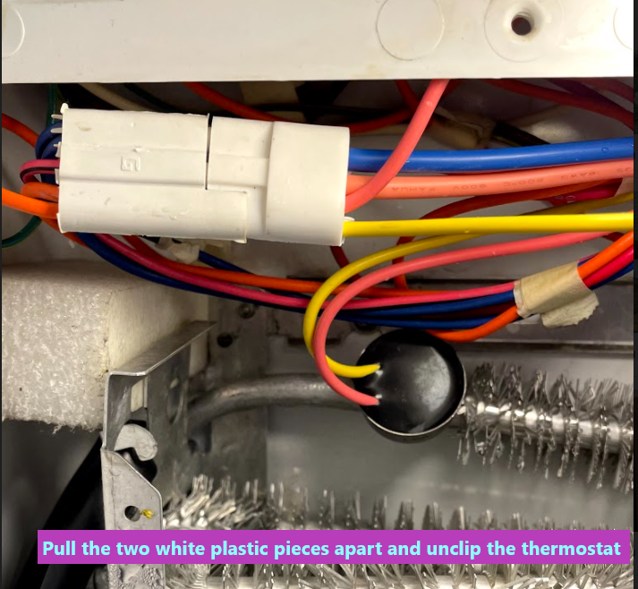 Disconnect the heater harness and pull the thermostat away from the coil.