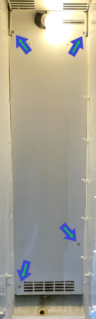 2. Turn off the power to the refrigerator to avoid getting electrocuted. Remove the panel by releasing the four screws. Two of those screws release by screw driver and the other two release by 6mm socket.