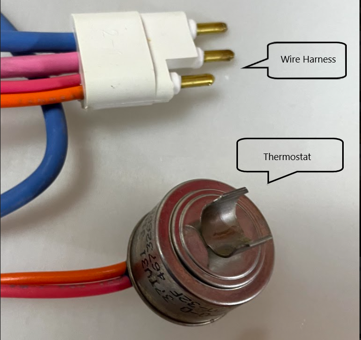 A closer look of it shows the wire harness and a thermostat.